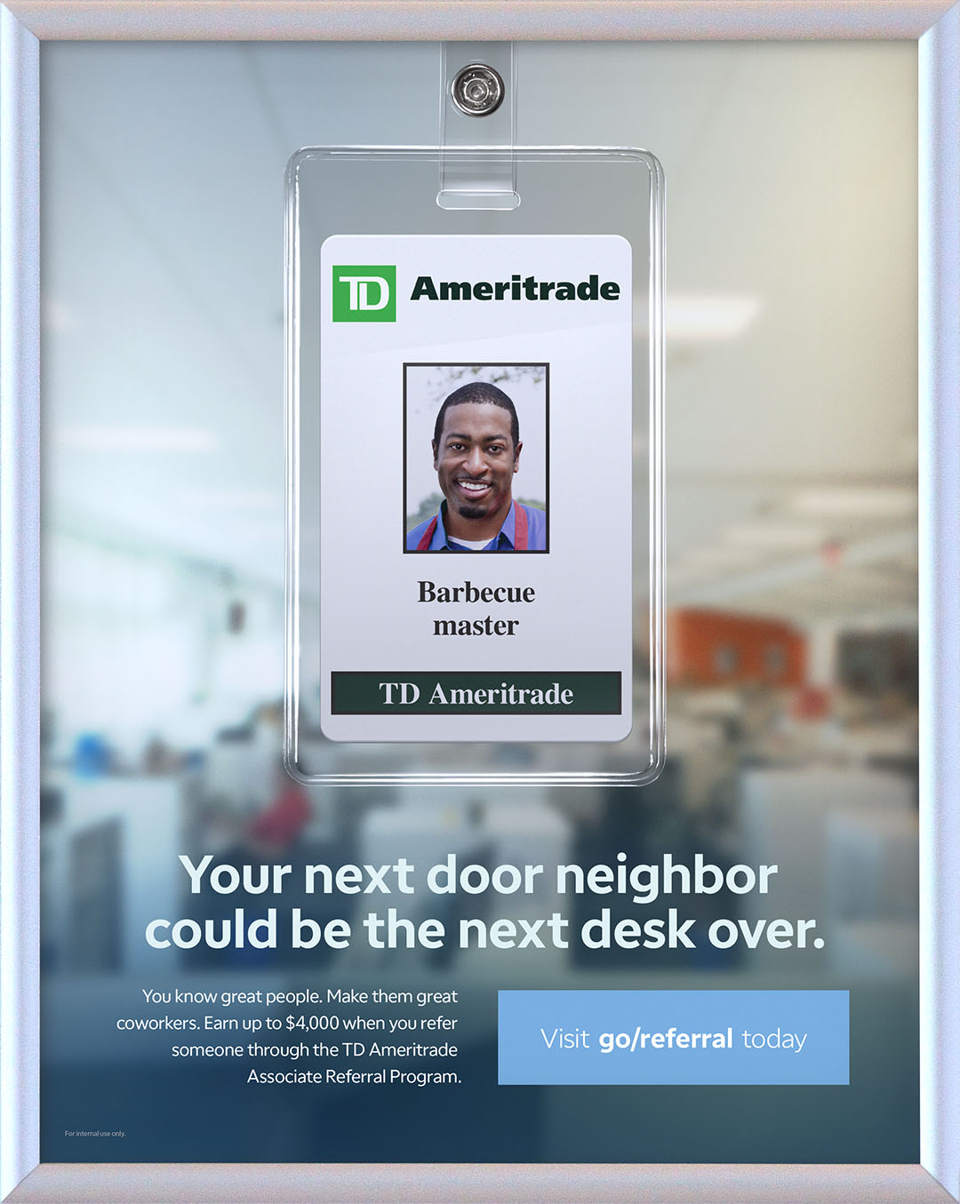 I worked in the in-house creative agency at TD Ameritrade for over 10 years. It was a great job full of opportunities to work on interesting projects with the best people. Here's a selection of work we did together.